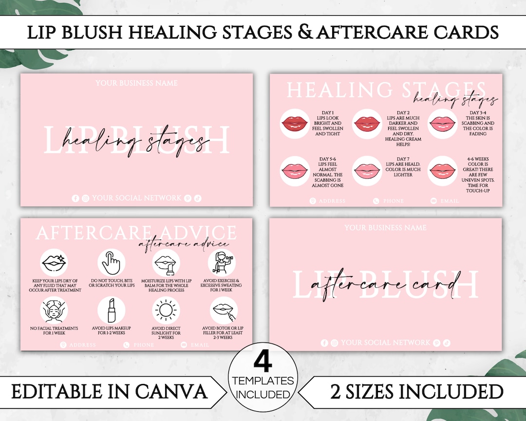 Lip Blush Healing Process and Aftercare Instruction Cards Etsy Lip Blush Aftercare Cards Editable lip blush aftercare cards, 4x6, lip contour aftercare template, pmu aftercare,lip tattoo aftercare, pink aftercare, best seller Check out our lip blush aftercare cards selection for the very best in unique or custom, handmade pieces from our templates shops. Super cute lip blush aftercare cards to give to your clients for them to take the best care of. Check. Lip Blush Aftercare Cards.