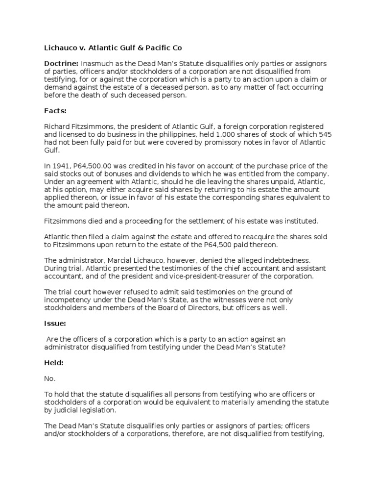 Lichauco v. Atlantic Gulf and Pacific Co PDF Corporations Testimony