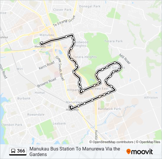 366 Route Schedules, Stops & Maps Manukau Bus Station To Manurewa Via the Gardens (Updated)