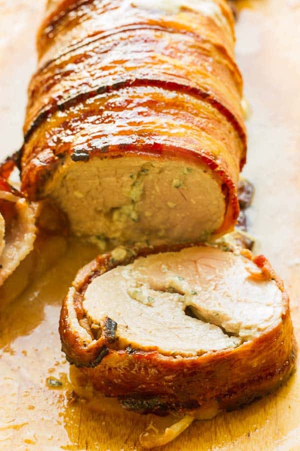 Blue CheeseStuffed Applewood Smoked Bacon Pork Loin • The Wicked Noodle