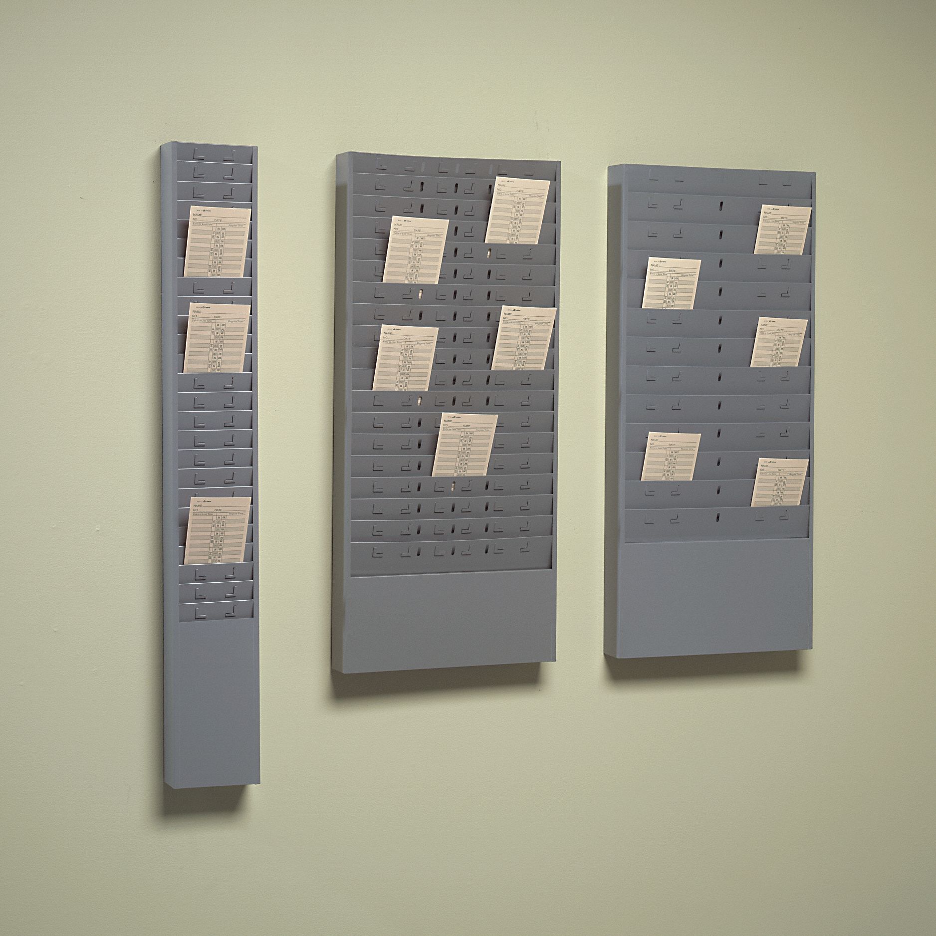 PYRAMID Expanding Time Card Rack, 81/2 x 41/2 in x 1/5 in Pocket Size Time Card Wall Rack The plastic rack is designed to accept most standard time cards and mounts to a wall for simple access. Tracking employee time and attendance punch time clock cards, racks, ink ribbons, and keys. We supply a wide selection of quality plastic card racks and metal card racks suitable to hold and display time. Features plenty of slots, so each employee. Time Card Wall Rack.