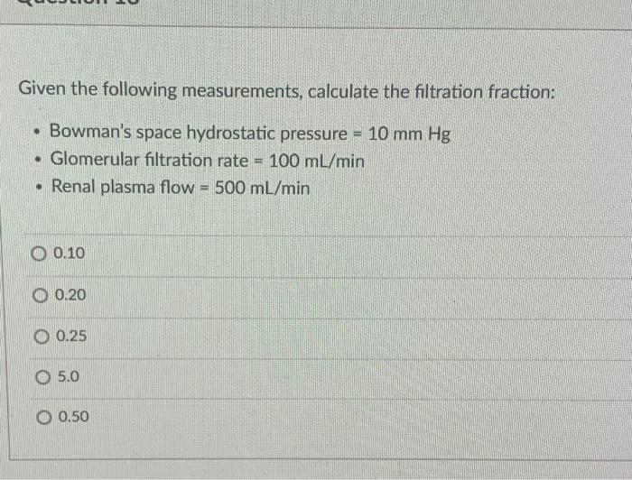 SOLVED A determination of the "filtration fraction" is an important clinical measurement; which Is Normal Filtration Fraction Approximately 0.5 Your solution’s ready to go! Most babies have two kidneys. Normal filtration fraction is approximately 0.5. The kidneys filter the blood and. Gfr decreases with age, but rpf remains relatively constant. • net filtration ceases due to balance of opposing starling. Gfr = glomerular filtration rate. Each nephron filters approximately 90 μl/day. • only a fraction of plasma that traverses. Is Normal Filtration Fraction Approximately 0.5.