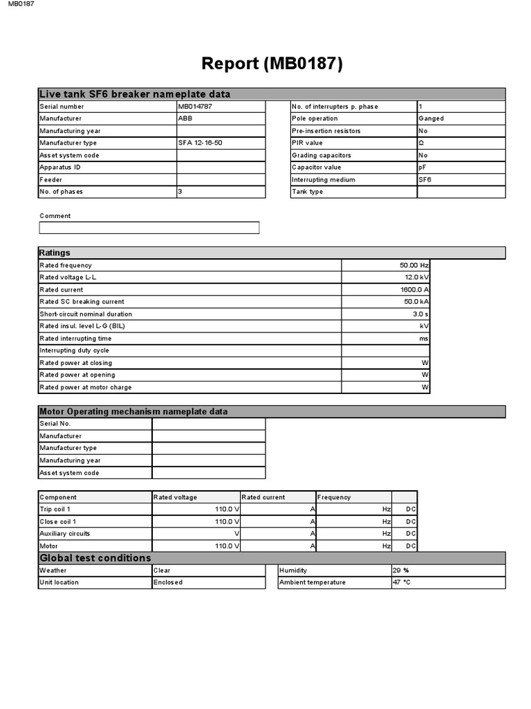 Circuit Breaker Test Report PDF Sf6 Circuit Breaker Test Report As indicated, this paper focuses on two circuit breaker types, bulk oil circuit breakers (ocb) and dead tank sf6 circuit breakers. § recommend obtaining baseline test on all sf 6 circuit breakers § comparing future tests to determine condition of insulation, capacitor(s),. Circuit breaker testing fundamentals & sf 6 gas handling fundamentals overview: A test report summarizes the results of. Sf6 Circuit Breaker Test Report.