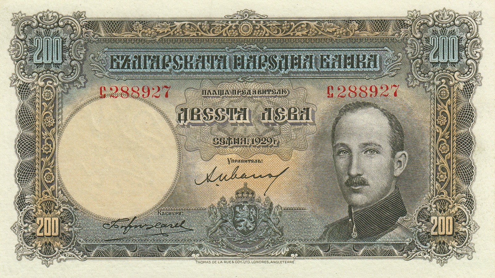 Bulgaria 200 Leva banknote 1929 Tsar Boris IIIWorld Banknotes & Coins