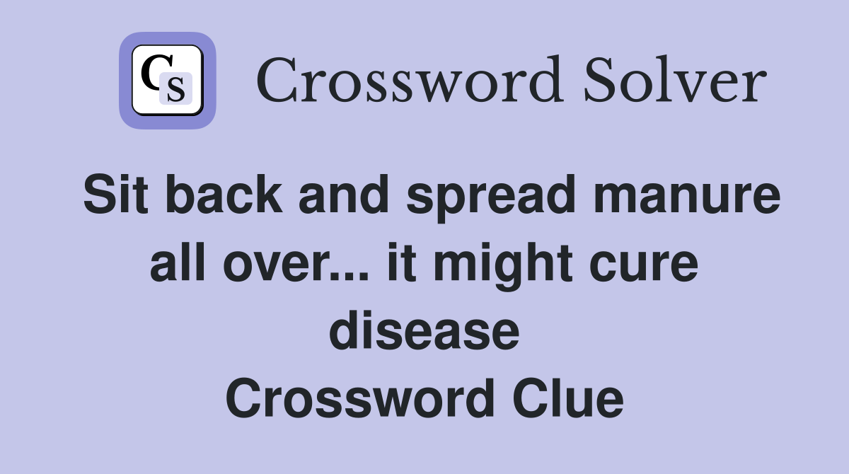 Sit back and spread manure all over... it might cure disease