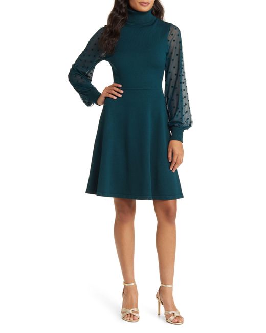 Eliza J Mixed Media Long Sleeve Fit & Flare Dress in Blue Lyst