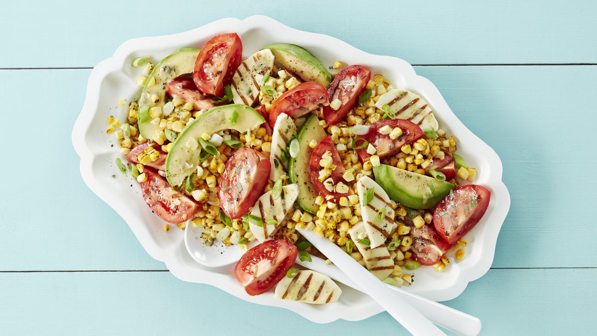 Charred Corn & Tomato Salad with Halloumi Cheese