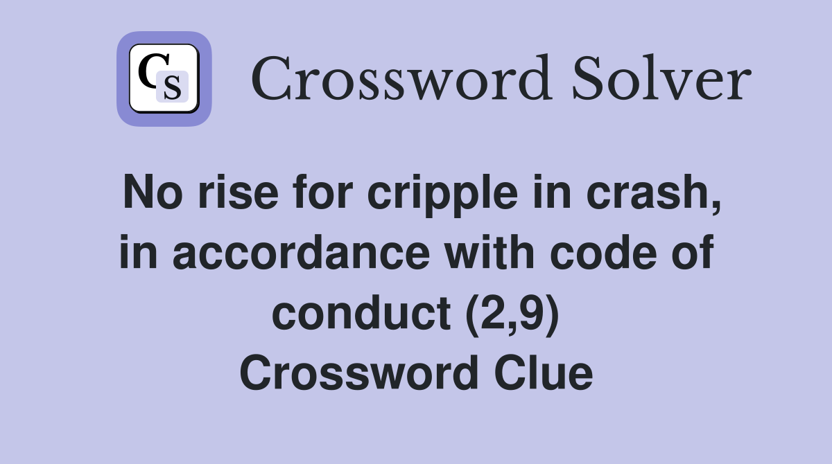 No rise for cripple in crash, in accordance with code of conduct (2,9) Crossword Clue Answers