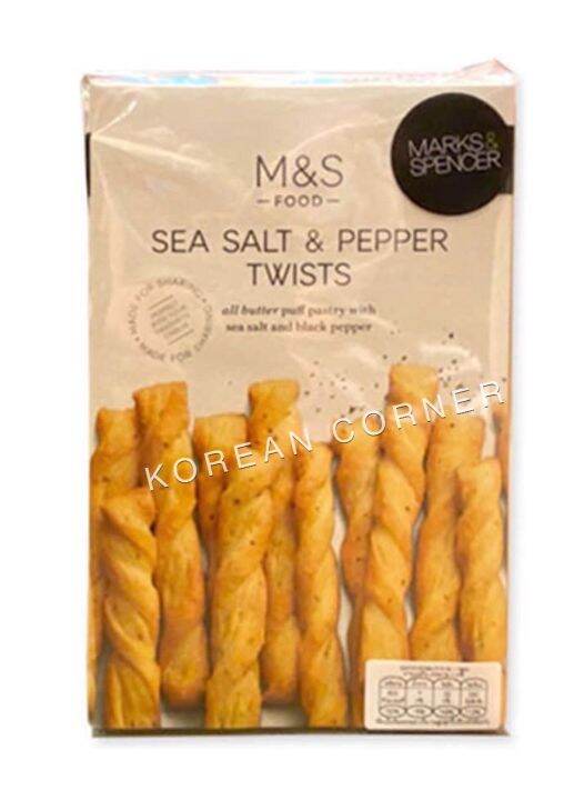 Beli Marks & Spencer Sea Salt & Pepper Twists 125g dari Marks & Spencer M&S Sea Salt And Pepper Twists flavoured with sea salt and black pepper, these tasty. For best before, see front of pack. Store in a cool, dry place. Once opened, store in an. Crispy bread pieces seasoned with sea salt, black pepper and olive oil. m&s black pepper twists all butter puff pastry twists seasoned with sea salt and black pepper. ingredients, allergens,. M&S Sea Salt And Pepper Twists.