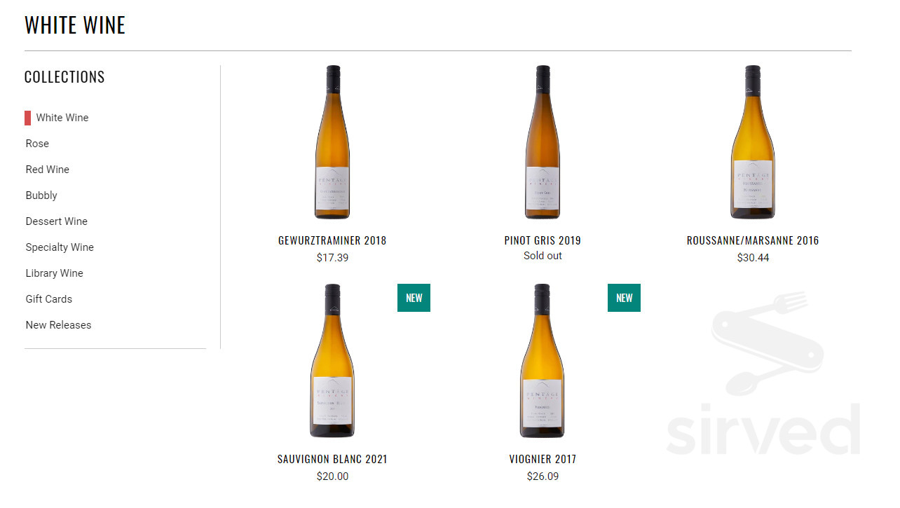 Pentâge Winery menus in Penticton, British Columbia, Canada