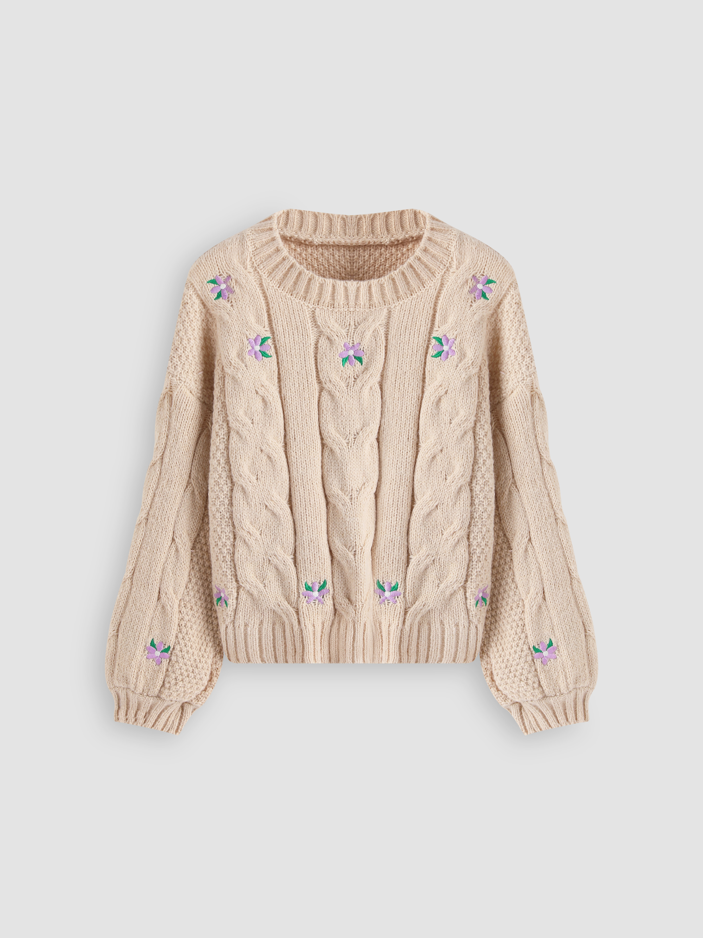 Floral Cable Knit Sweater Cider