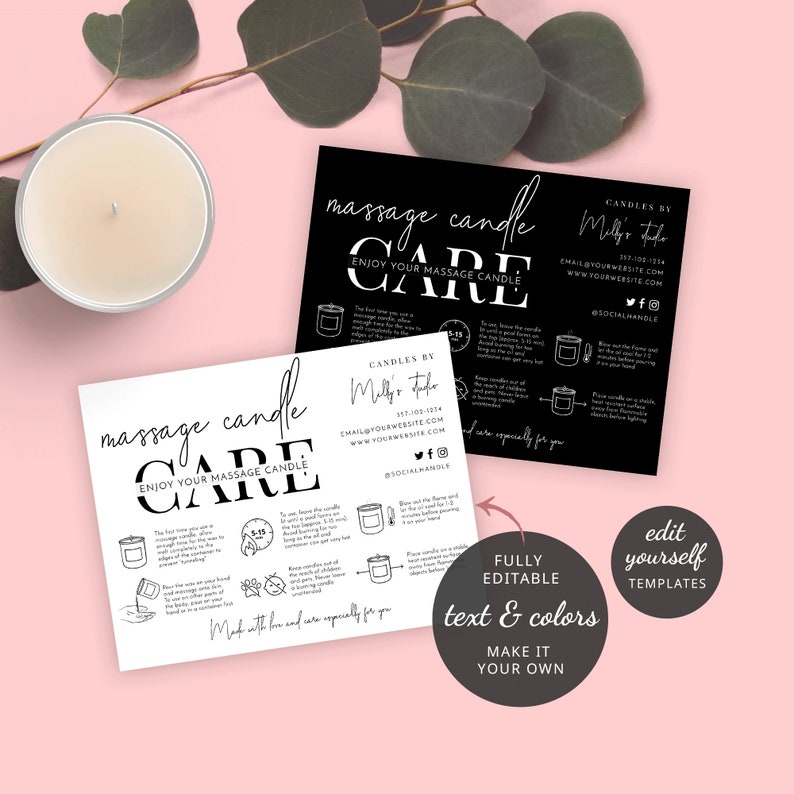 Massage Candle Care Guide Template Custom Massage Soy Wax Etsy
