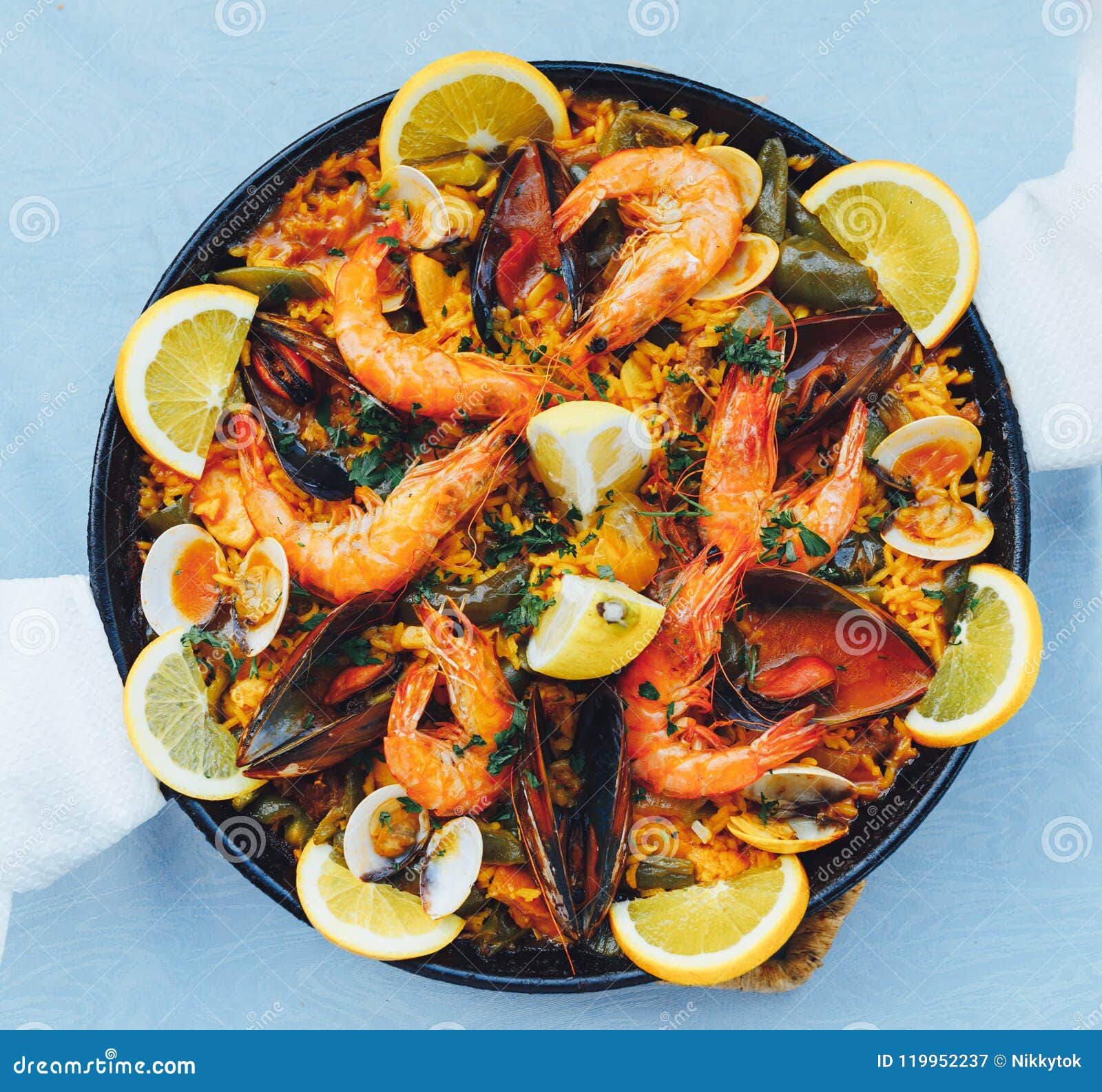 Spanish seafood paella stock image. Image of mussel 119952237