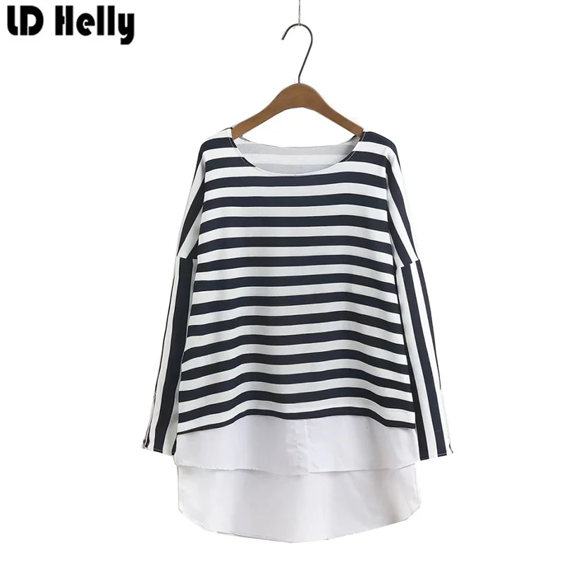 LD Helly Autumn Women Striped Sweatshirts Oversized O Neck Long Sleeve