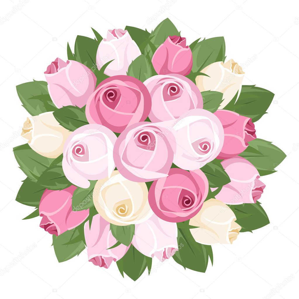 White rose bud bouquet Bouquet of pink and white rose buds. Vector