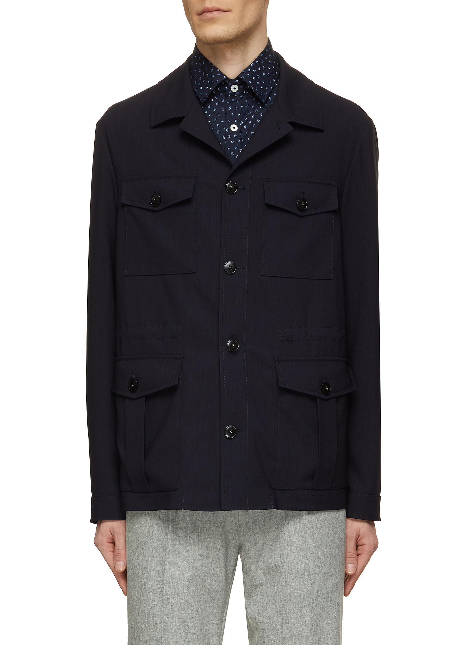 Canali Button Up Wool Safari Jacket in Blue for Men Lyst