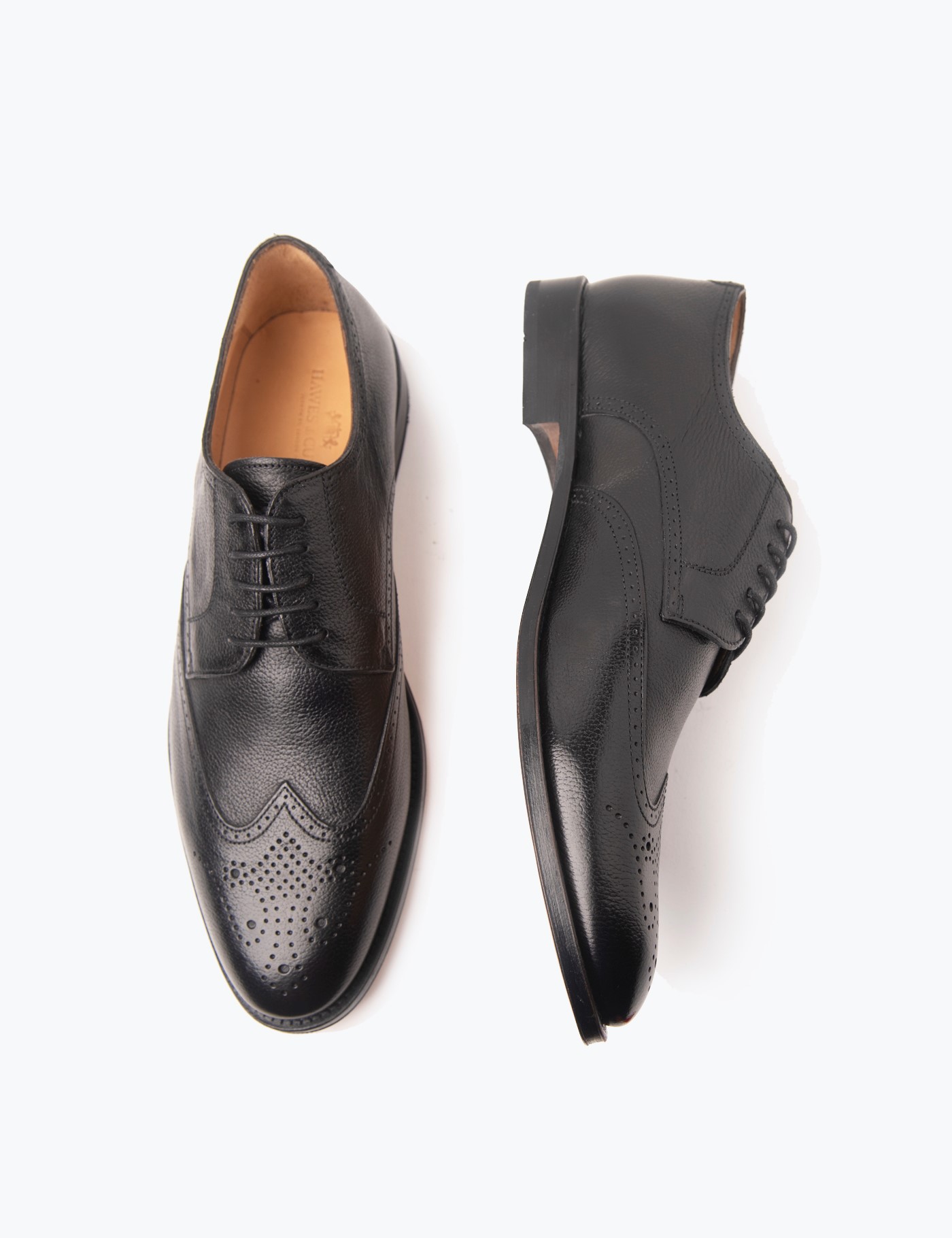 Leather Men's Shoe with Derby Lace Up in Black Hawes & Curtis UK