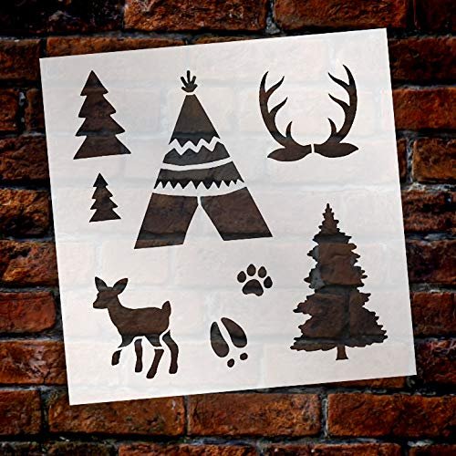 Woodland Art Stencil by StudioR12 DIY Nursery Nature Decor Animal