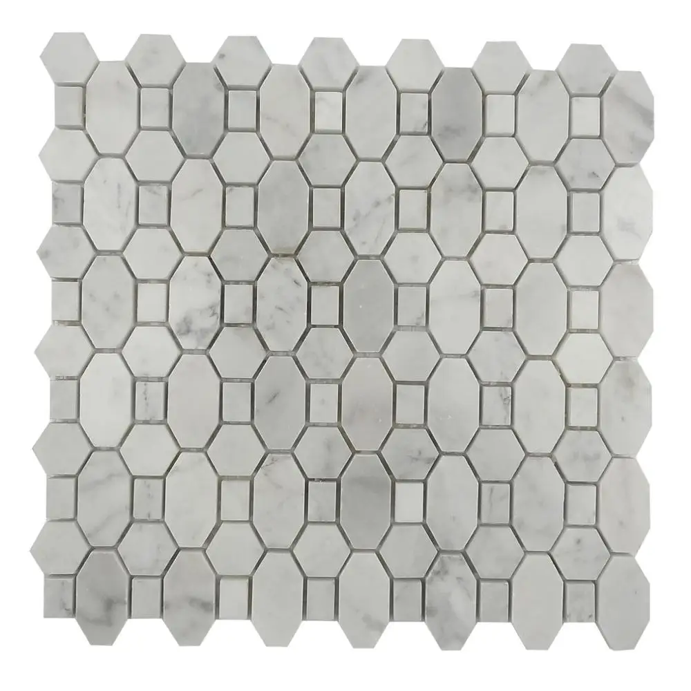 Heat Resistant Carrara White Marble Mosaic Tile For Background Wall