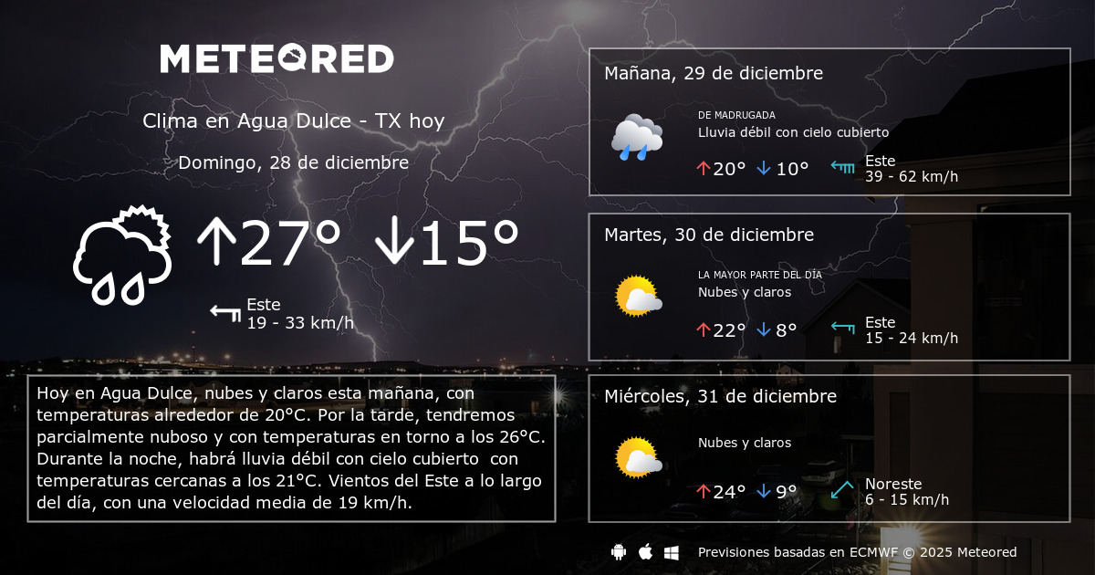 Clima en Agua Dulce TX. El tiempo a 14 días Meteored Agua Dulce Tx Weather agua dulce weather forecasts. As of 2:06 am cdt. agua dulce, tx current weather | accuweather. agua dulce weather forecasts. As of 8:10 am cdt. 7% thu 30 | night. wind gusts 13 mph. Indoor humidity 32% (slightly dry) air quality excellent. Day 102° • night 74°. Agua Dulce Tx Weather.