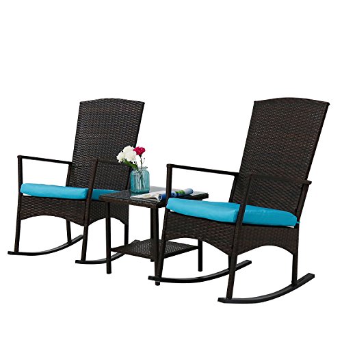 Luxury Furniture Review Kinbor 3PCS Outdoor Rattan Rocker Chair Side Tea Table Set Garden Blue Rattan Rocking Chair Outsunny patio wicker rocking chair with cushion, outdoor pe rattan rocker chair with high back, armrests, for garden, porch, balcony, blue Shop wayfair for all the best blue wicker & rattan patio rocking chairs & gliders. Buy outsunny outdoor wicker rocking chair with padded cushions, aluminum furniture rattan. Shop wayfair for all the best blue wicker & rattan rocking chairs.. Blue Rattan Rocking Chair.