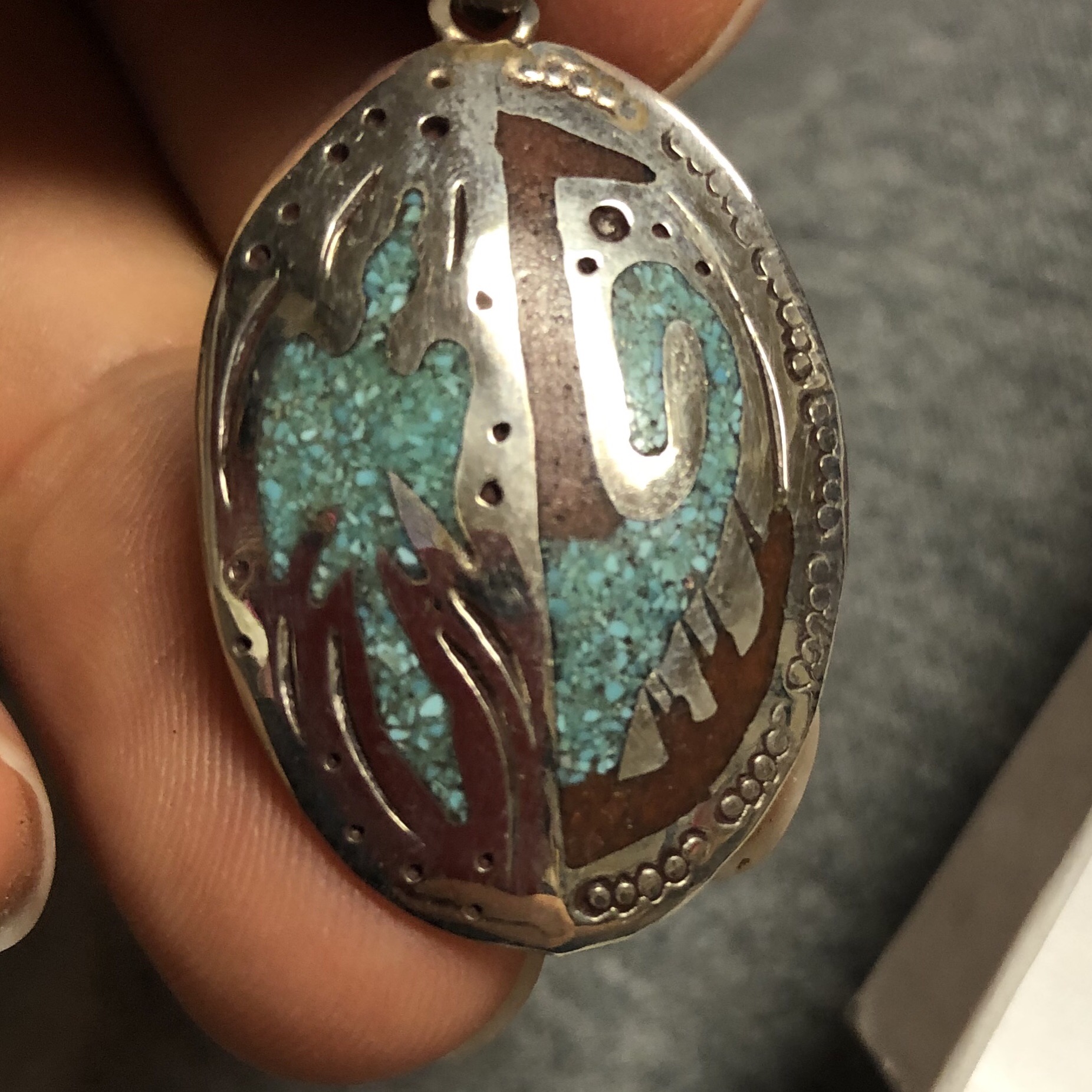 Zuni/Navajo Pendant unknown hallmark Antiques Board
