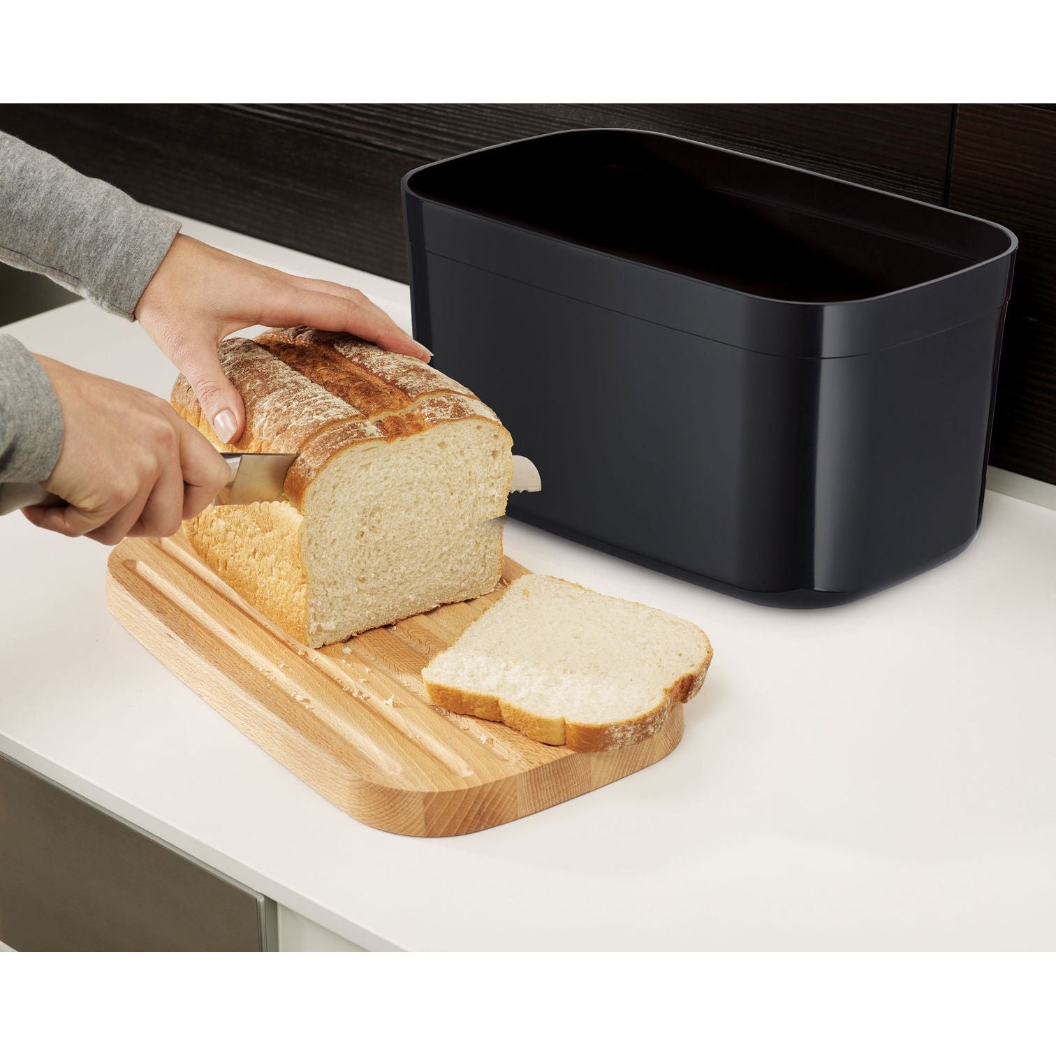 Joseph Joseph Bread Bin with Bamboo Wood Cutting Board Lid, Black Joseph.joseph Bread Bin a practical storage solution for any kitchen, this stylish bread bin has an easy. this sleek bread bin is a stylish way to store loafs and baked goods. keep all your bread, rolls and pastries fresher for longer in this stylish bread bin, with a specially designed bamboo lid that doubles as a cutting board. a. Joseph.joseph Bread Bin.