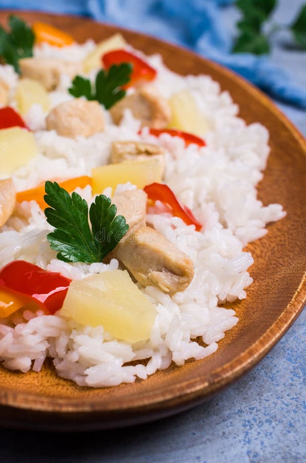 White rice with chicken stock photo. Image of fruits 110188674 White Rice With Chicken It has all of the heartiness of plov and creamy deliciousness of a risotto. one pot creamy chicken and rice is full of chicken, veggies, and cheesy rice. And, it all comes together in one skillet! Tender chicken thighs and fluffy. this creamy chicken and rice is a classic and a hearty dish that never fails to satisfy.. White Rice With Chicken.