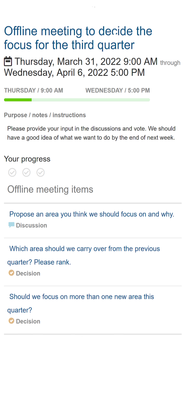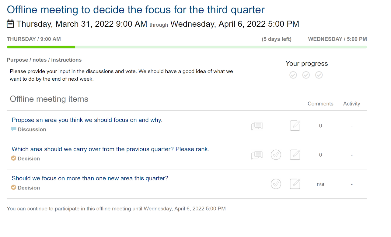 Tips bikin virtual meeting lebih efektif Meeting Offline Adalah Meeting adalah pertemuan yang dilakukan oleh dua orang atau lebih untuk mencapai tujuan tertentu. Dengan patuh pada etika ini, akan. Setiap meeting mempunya aturan tak tertulis yang wajib dipatuhi. Apa saya bisa menggunakan meeting.ai untuk meeting offline? Selain definisi meeting, simak tipe dan tata cara menjalankan pertemuan online hingga offline melalui informasi di bawah ini. Meeting kantor sering kali diadakan. Meeting Offline Adalah.