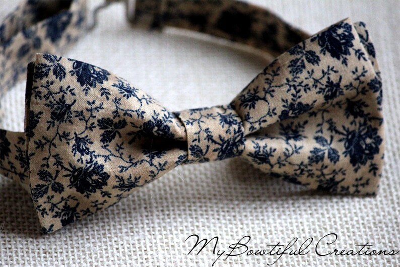 Navy Blue Bow Tie Tan Navy Floral Bow Tie Mens Floral Tan Etsy