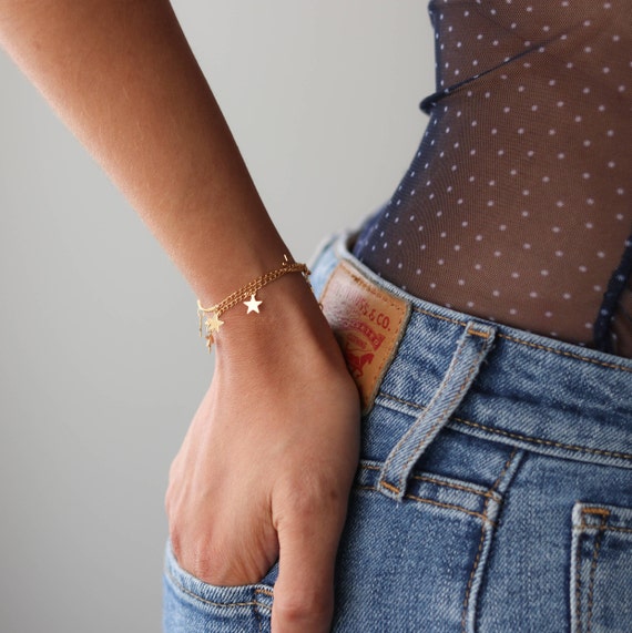 Gold Star Bracelet Dainty Layered Bracelet Friendship Etsy Gold Star Bracelet Dainty Celestial stars bracelet in 14k real gold, dainty star bracelet, initial star bracelet, gift for her, minimalist bracelet, bridesmaid gifts. Gold dainty star bracelet, 14k solid gold chain bracelet, real gold celestial bracelet for her, handmade fine jewelry by selanica Gold dainty star bracelet, 14k solid gold chain bracelet, real gold celestial bracelet for her, handmade fine jewelry by selanica. Gold Star Bracelet Dainty.