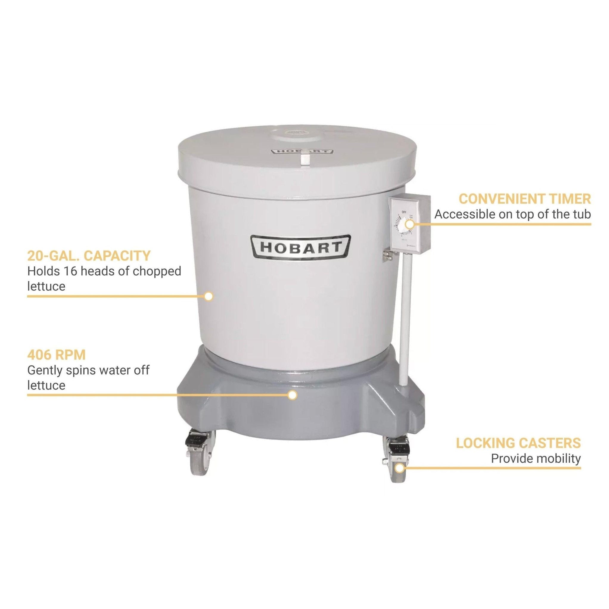 Scratch and Dent Hobart SDPE11 20 Gallon Electric Polyethylene Salad Salad Dryer Sdpe It uses a voltage of 115/60/1. Hobart salad dryers can add up to three days to the shelf life of your greens and reduce salad dressing cost by as much as 15%. The perfect commercial salad dryer and spinner to prepare large quantities for large operations. Quickly dry up to a case of lettuce (16 heads) in as little as. Salad Dryer Sdpe.