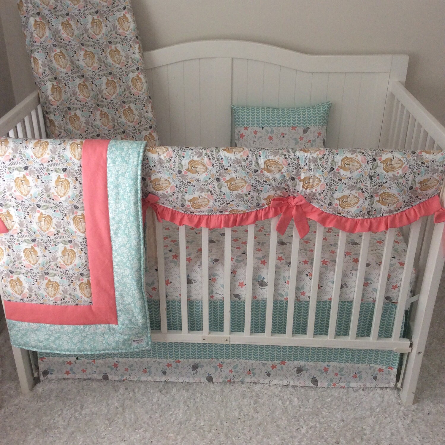 Baby Girl Crib Bedding Fawn Woodland Crib Set in Peach Coral