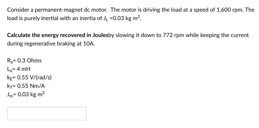 SOLVED Consider a dc motor The motor is driving the