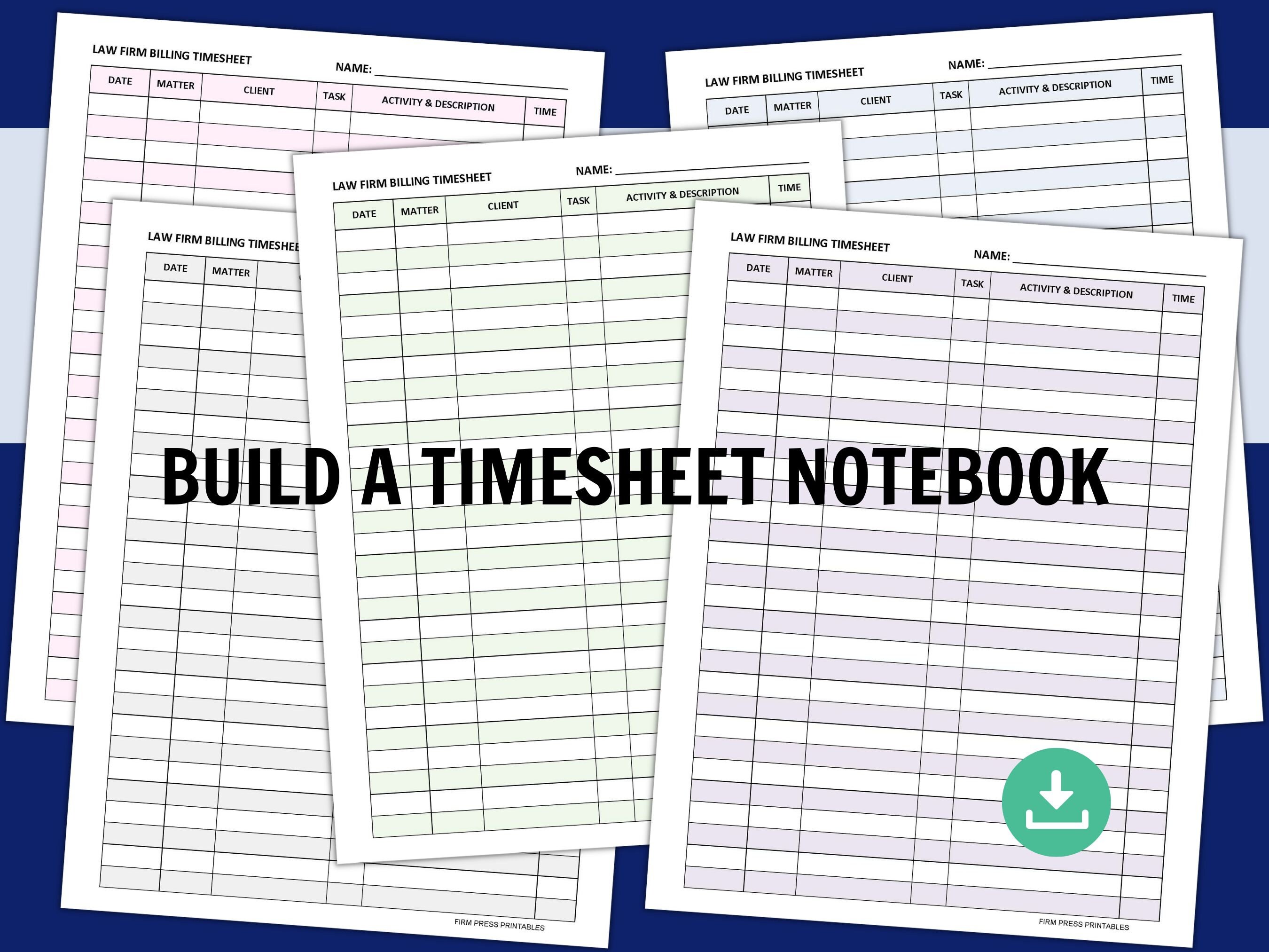 Attorney Timesheet Legal Timesheets Lawyer Time Sheet Law Office Time Attorney Time Tracking