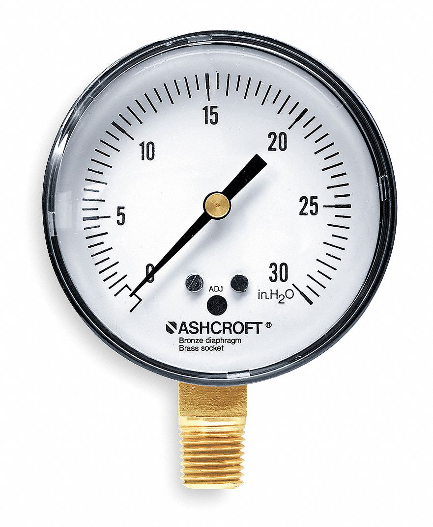 ASHCROFT Pressure Gauge, 0 to 30 in wc Range, 1/4 in NPT, +/1.00