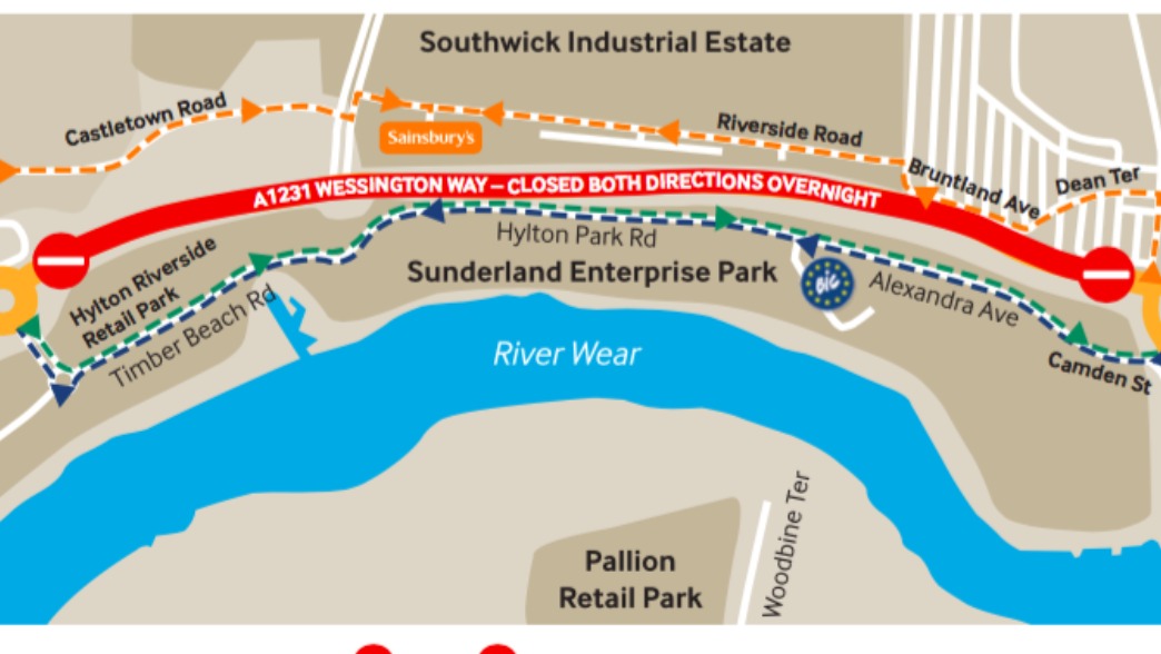 Overnight closures for main road into Sunderland ITV News Tyne Tees