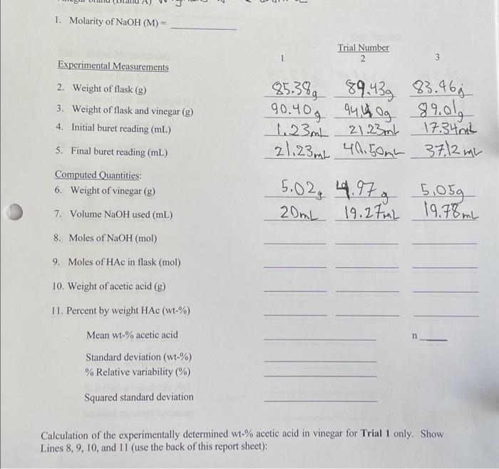 Solved Experimental Measurements 2. Weight of flask (g) 3.