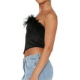 Women Sleeveless Feather Furry Tube Top Fashion Irregular Hem Strapless