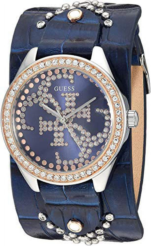 GUESS U1140L3 Blue/Rose Gold Watch Blue Rose Gold Watch Rose gold tone stainless steel case with blue tone outer ring. Blue dial with flat mineral crystal. That's what the classic stands for, it reflects the elegance of watchmaking traditions with a touch of understated urban. Perfection takes time and time takes perfection. Blue Rose Gold Watch.