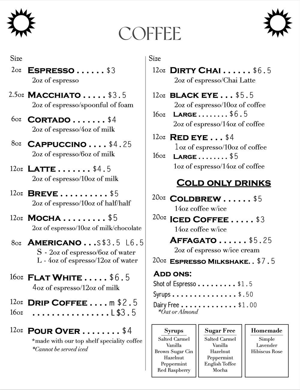 MENU Family Grounds Coffee Co.
