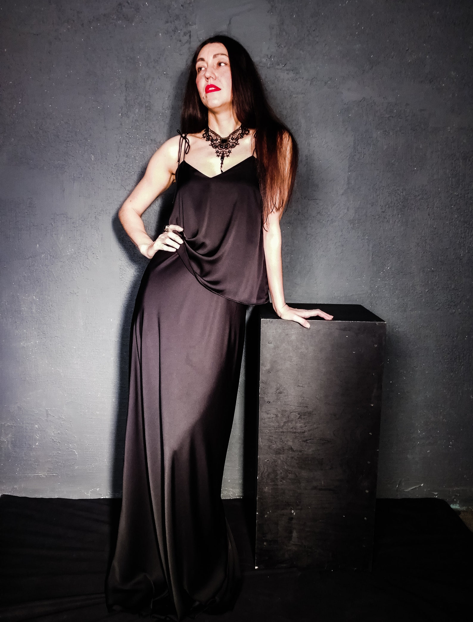 Goth black dress womens suit. Includes silk top and maxi Etsy