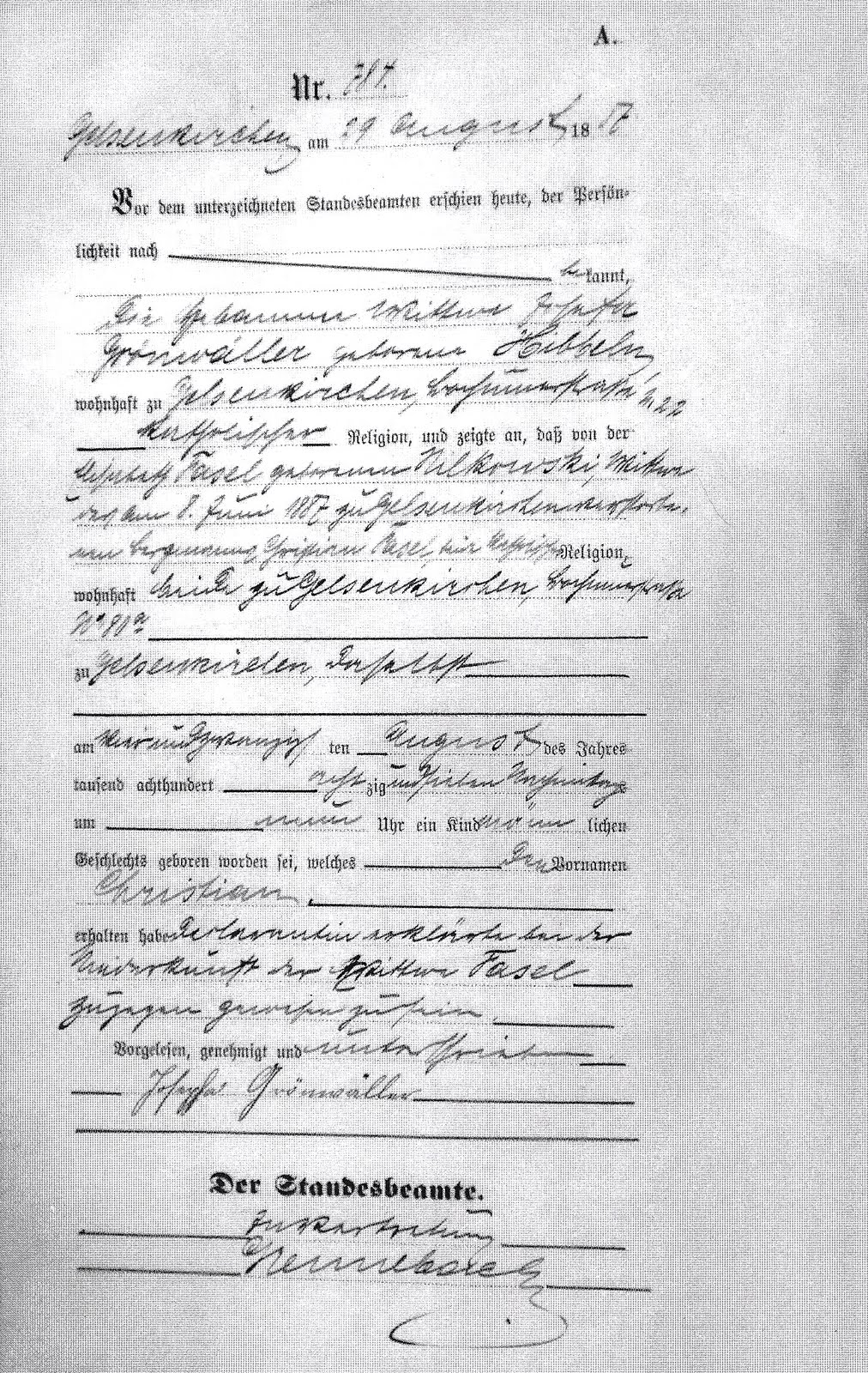 Help With Translating German Birth Record From the Late 19th Century Breslau Germany Birth Records In general, it is advisable to start researching ancestors at municipal archives or state archives of those regions, which seem likely to be. We communicate with the german civil registries on your behalf and reliably obtain the birth, marriage and death. Eine fungrube für ahnenforscher in breslau. These are genealogy links to germany online databases and indexes that may include. Breslau Germany Birth Records.