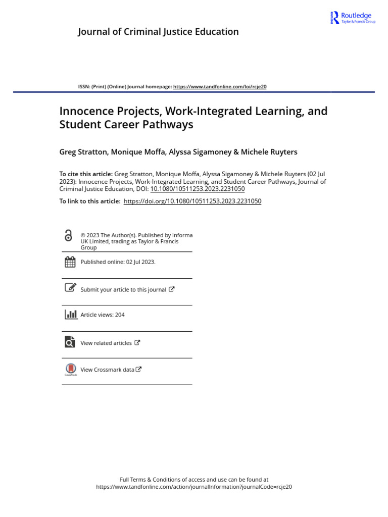 Innocence Projects Work Integrated Learning and Student Career Pathways