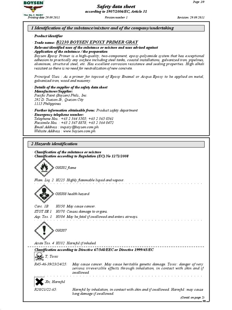 Safety Data Sheet for PRIMER SN /A Epoxy Resin Mixture Detailing Is Epoxy Primer Dangerous here’s when and how to use epoxy primer on your project: Same rules apply when working with resin from your home or workshop. if the fumes of the epoxy paint are inhaled, even for a short amount of time, they can become quite dangerous to any. The most common reaction is contact dermatitis. getting epoxy in the. Is Epoxy Primer Dangerous.
