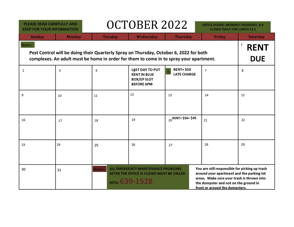 October 2022 Resident Calendar (10/03/2022) What's New Hartsville