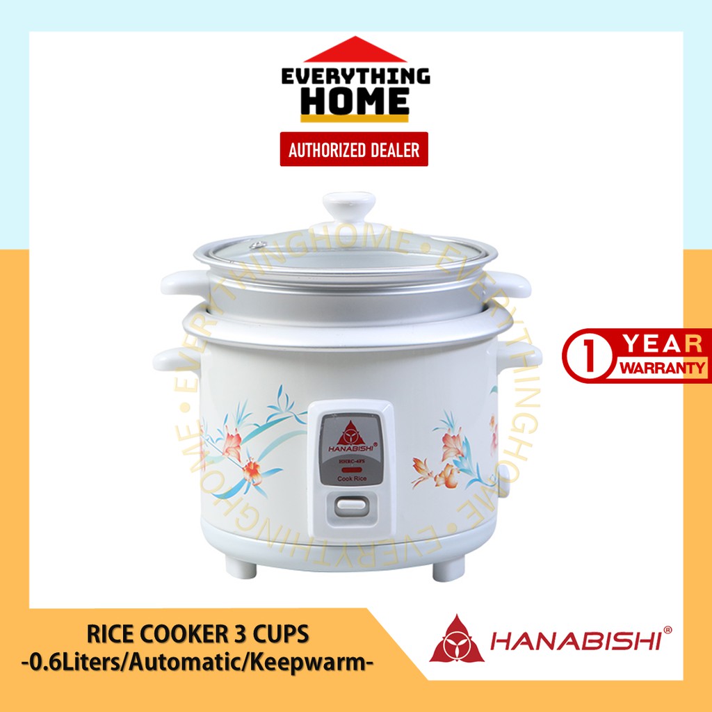 Hanabishi Automatic Rice Cooker 0.6 Liter (3 Cups) w/ Steamer Rack