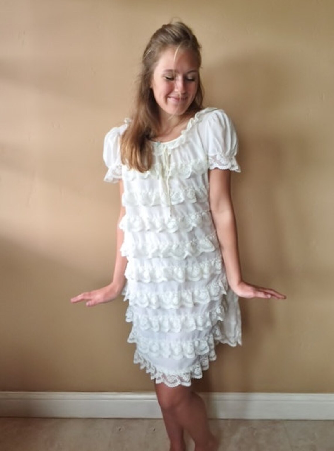 Vintage Lace Dress 60s Ivory Babydoll Dress Mod Ruffled S / M Etsy