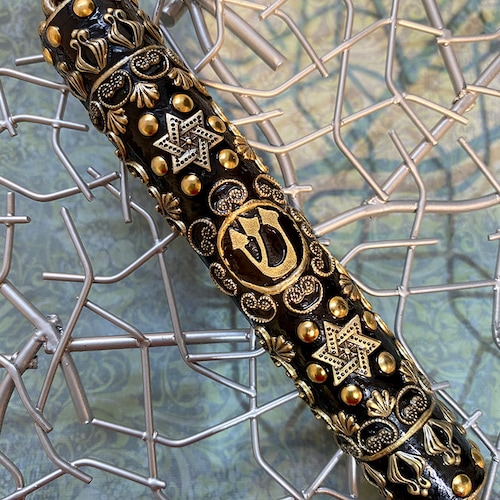 Set of 5 Mezuzah Cases with Decorative Judaica Motifs, Black & Gold 4" Length Black And Gold Mezuzah Unique handmade jewish home decor. 4.5/5 (1,806) A simple, sleek and practical mezuzah. Black and gold star of david mezuzah. It it closes with a screw in cap at the bottom which makes it perfect for outdoor use. Our mezuzot are fresh, trendy, and sure to add just the right touch to. Check out our black and gold mezuzah. Black And Gold Mezuzah.