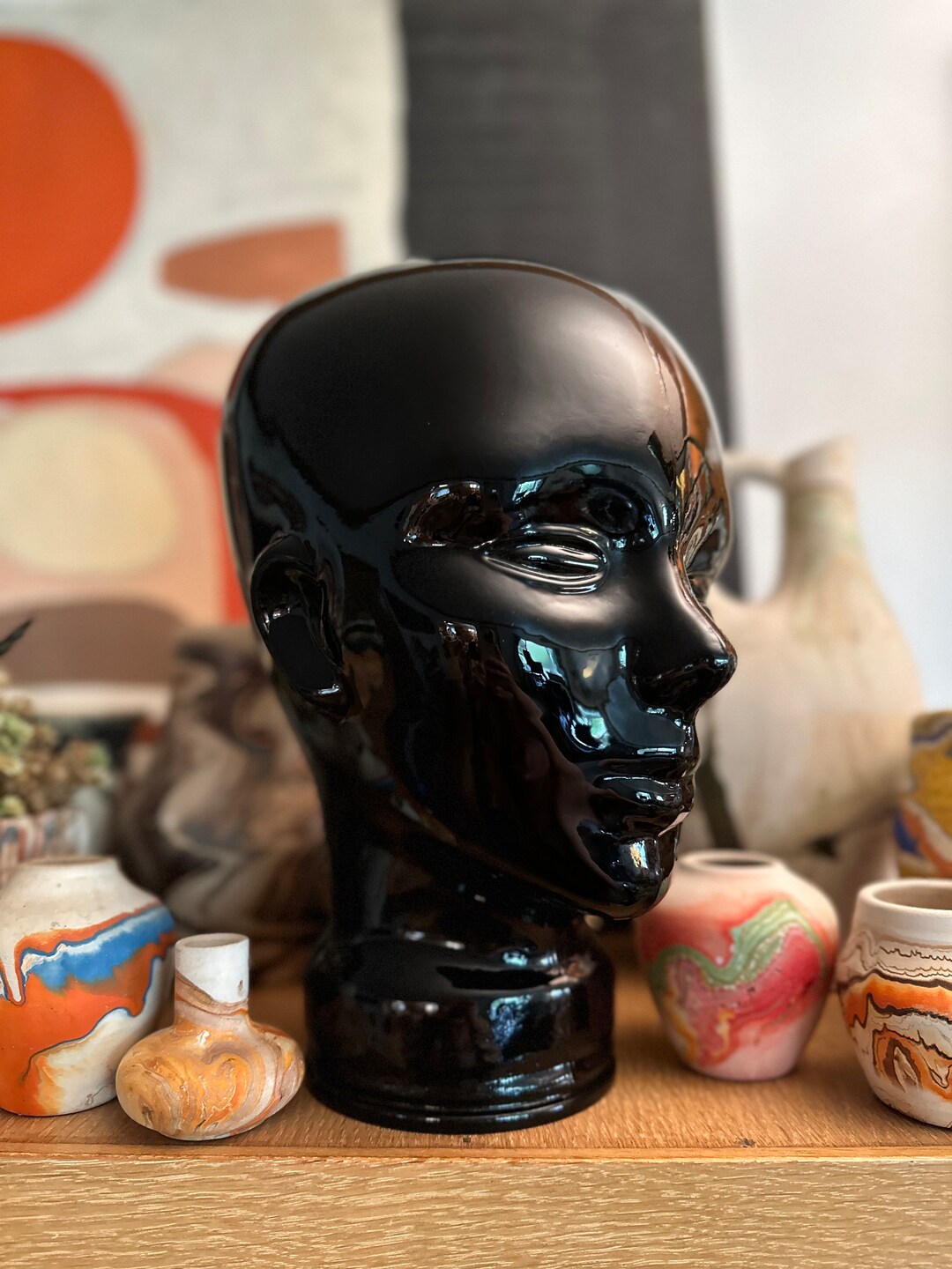 Kitschy Black Glass Head Bust Vintage Display Piece Retro Decor Black Glass Head Discover a stunning selection of hand blown glass sculptures made in venice, italy. Are you looking for glass head sculpture online? Check out our glass head black selection for the very best in unique or custom, handmade pieces from our collectible glass shops. Check out our black glass mannequin head selection for the very best in unique or custom, handmade. Black Glass Head.